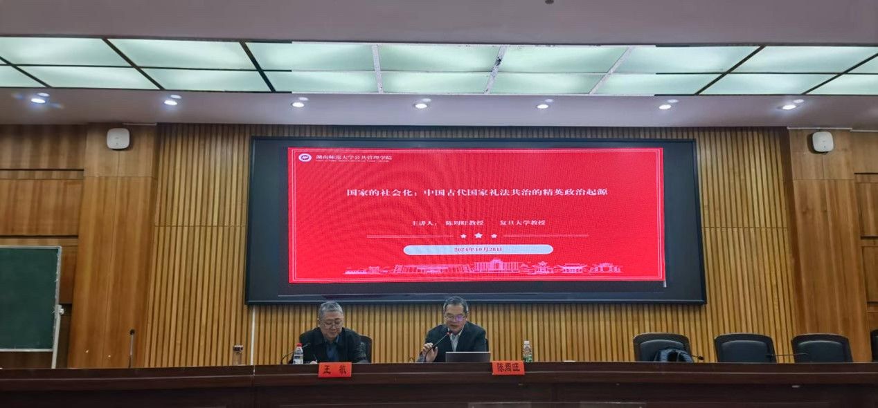 (通讯员:黄思雨 颜青)10月26日下午,全国百优博士论文获得者、复旦大学国际关系与公共事务学院教授、博士生导师陈周旺教授在公管院三楼学术报告厅进行了主题为“国家的社会化:中国古代国家礼法共治的精英政治起源”的学术讲座。讲座由政治学一级学科博士点主办,9999js金沙老品牌副院长王敏教授主持。湖南师范大学胡守勇教授、付振奇副教授、李中仁副教授、王劲嵛博士、袁青博士等教师以及公管院部分本科生、研究生参与了本次讲座。