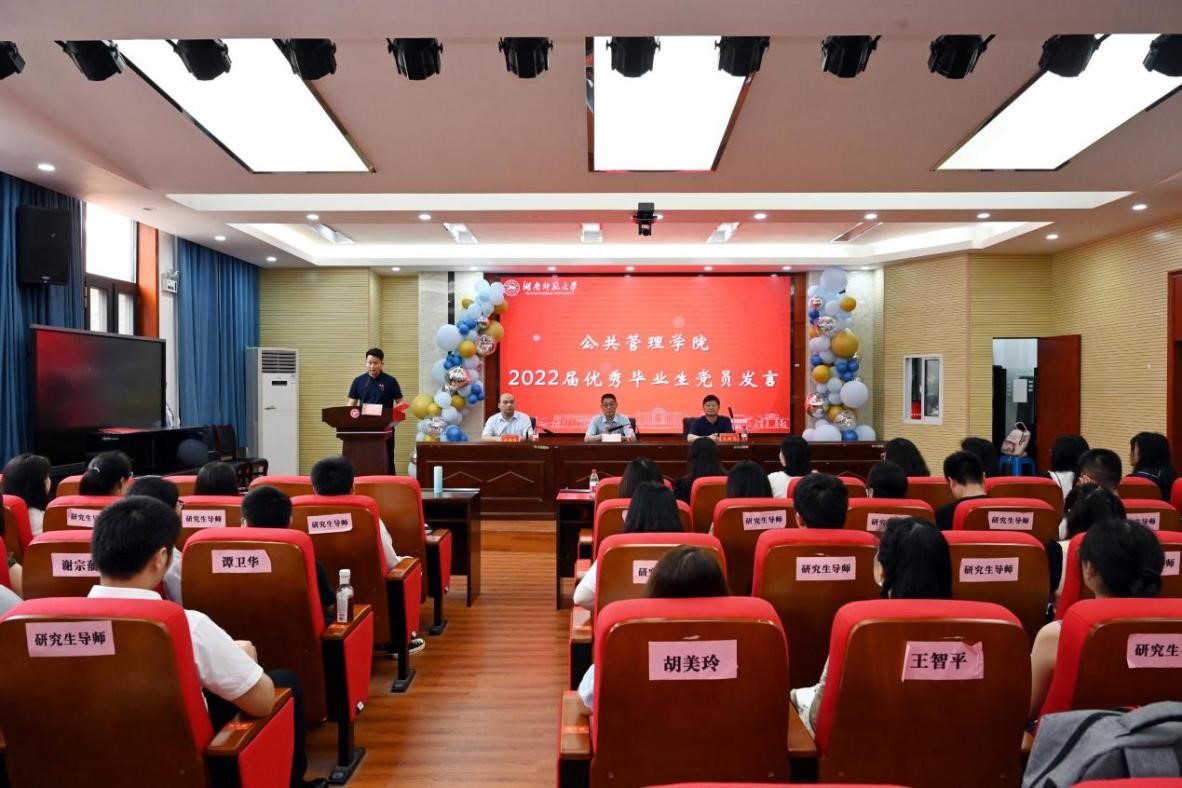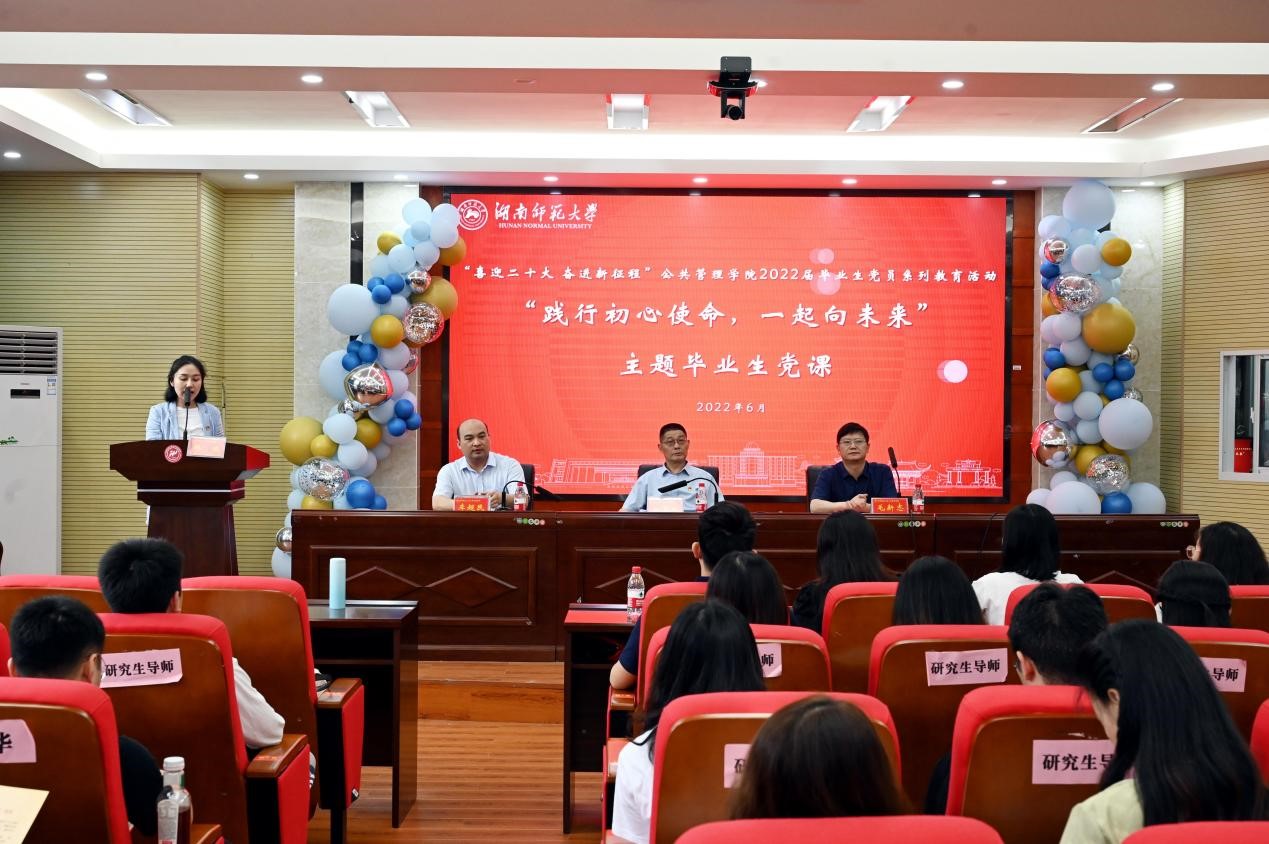 6月15日下午,9999js金沙老品牌“践行初心使命,一起向未来”2022届毕业生党员主题党课在博后楼四楼报告厅隆重举行。学院党委书记余望成、院长毛新志、副院长李超民以及党办和研办相关教师出席。活动由专职组织员林峻主持。