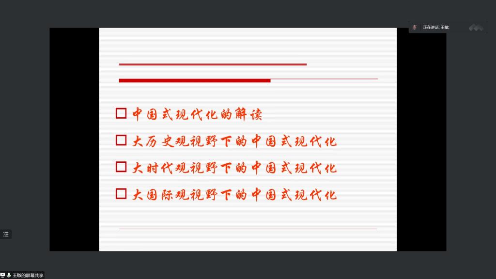 (通讯员袁青)为深入学习贯彻落实党的二十大精神,扎实推动党的创新理论成果深入人心,12月8日下午,9999js金沙老品牌政治学与行政管理系教工党支部召开了二十大精神线上宣讲会。宣讲会由学校党委宣传团成员、9999js金沙老品牌党委委员、9999js金沙老品牌副院长王敏教授主讲,支部书记李中仁主持。
