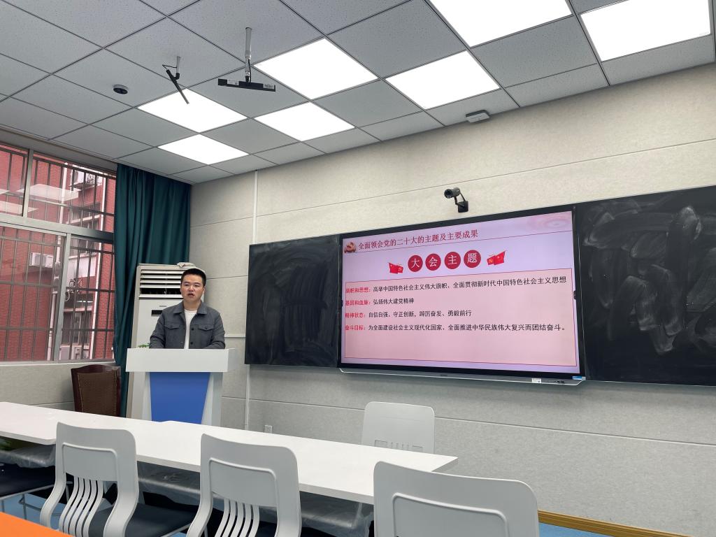 随后,胡耀飞、刘操和毛影黛同志以“微党课”的形式领学党的二十大精神。胡耀飞同志从党的二十大的主题出发,通过采取小角切入、多角论证的方式,对“团结奋斗”进行深入浅出的解读;刘操同志紧紧围绕党的二十大主题,系统梳理了二十大的主要成果;毛影黛同志以自身视角阐述了实施科教兴国战略的重要性,希望各位党员同志不忘初心,牢记作为一名教育工作者的使命担当。通过原文传达、精准讲解和现场讨论等方式,全体党员加深了对二十大精神要义的把握,有力推动了支部党员学习党的二十大精神持续走向深入。