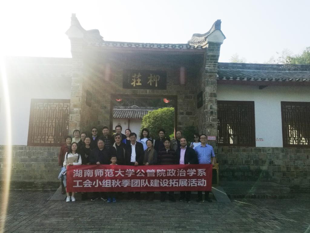 为加强爱国主义教育和工会小组的团队凝聚力。10月31日,政治系工会小组全体成员赴湘阴热情洋溢地展开了秋季团队建设拓展活动。活动过程中,政治系全体教职工参观了湖湘名人左宗棠故里柳庄,切实感受了左宗堂的爱国主义情怀与民族精神。参观过程中,大家深深受到湖湘名人的伟大功勋与人格精神感染,激情澎湃。大家还相互交流、积极互动,营造了轻松、愉快而又和谐的团队氛围。活动结果后,大家欢聚一堂,举杯畅饮,尽享当地特色美食。此次团队建设活动,展现出政治系全体教职工健康、团结、昂扬的精神面貌,增强了政治系工会小组的团队凝聚力。
