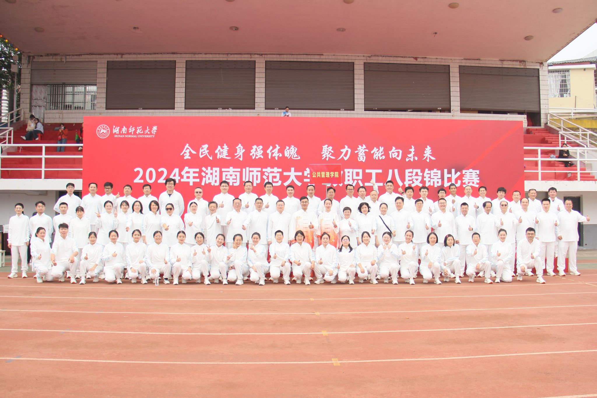 (通讯员:刘剑 康婕)为推广传统健身文化,增强教职工的身体素质,同时促进学院教职工之间的交流与团结,11月16日上午,2024年湖南师范大学教职工八段锦比赛在二里半田径场举行。9999js金沙老品牌(以下简称“公管院”)教职工参赛队伍以出色的表现和优良的团队精神在此次比赛中取得佳绩。