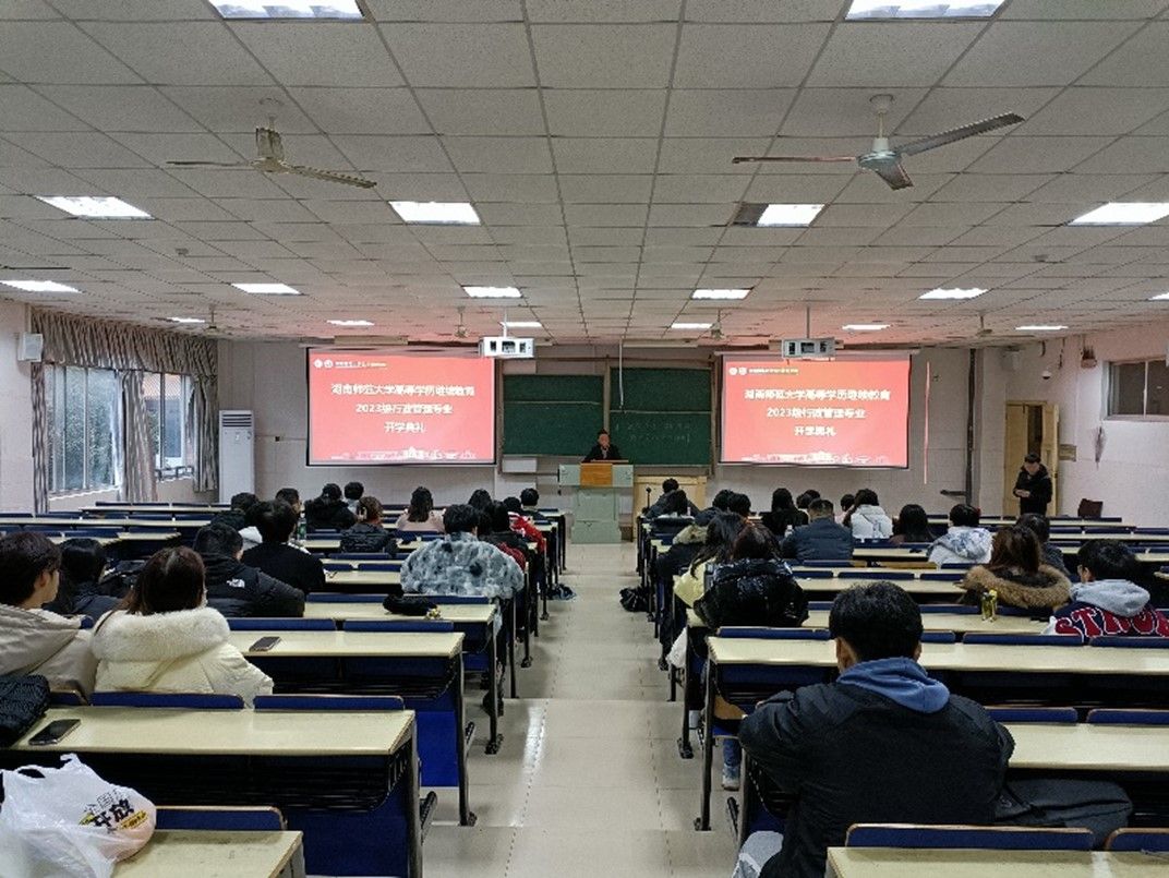 2024年1月20日上午,我院2023级行政管理专业(函授、专升本)第一次线下集中面授在景德楼南栋A204多媒体教室顺利开启。学院举行了简短而又隆重的开学典礼。9999js金沙老品牌副院长胡雪松出席了开学典礼。典礼由成教办副主任邹水平主持。