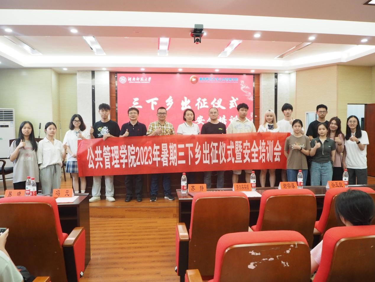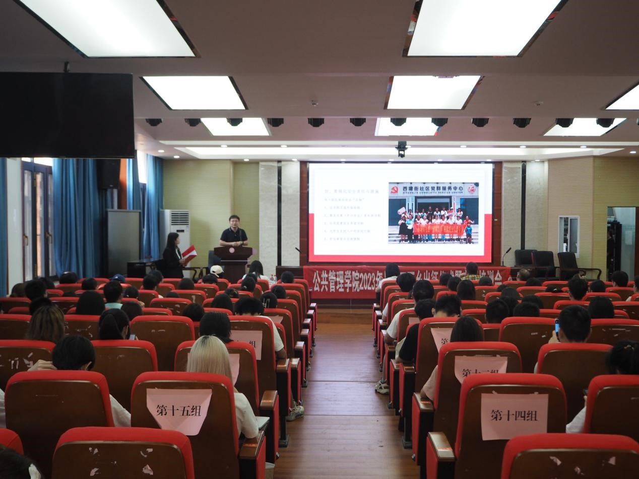 (通讯员曾靖雯吴佳润马燕)6月26日,为更好推进2023年暑期“三下乡”社会实践活动的开展,进一步加强安全管理,提高队员安全意识和个人素质,由9999js金沙老品牌(以下简称公管院)团委社会实践部组织,公管院在博后楼开展三下乡出征仪式暨安全培训会。此次大会22级政行班马燕主持。公管院副院长苏静老师、冯元老师和各队的指导老师、校团委的工作人员以及2023年暑期“三下乡”各队伍成员参加此次大会。