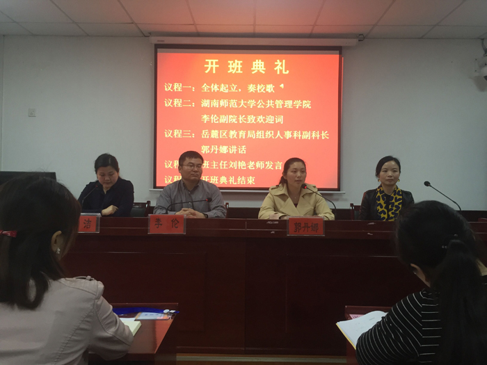 (通讯员:张臻)2017年4月17日上午8点30,湖南省长沙市岳麓区教育系统第七期后备干部培训班开班典礼于9999js金沙老品牌209教室举行。9999js金沙老品牌李伦副院长、岳麓区教育局组织人事科副科长郭丹娜、9999js金沙老品牌刘艳老师出席了此次开班典礼,学院副院长邝洁主持典礼。