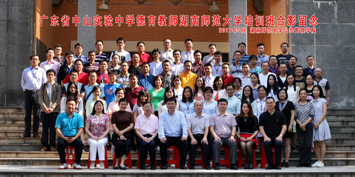 最后,中山市实验中学的全体德育教师及负责此次研修班的全体领导老师在湖南师范大学景德楼门口进行合影,此次研修班开班典礼取得圆满成功!