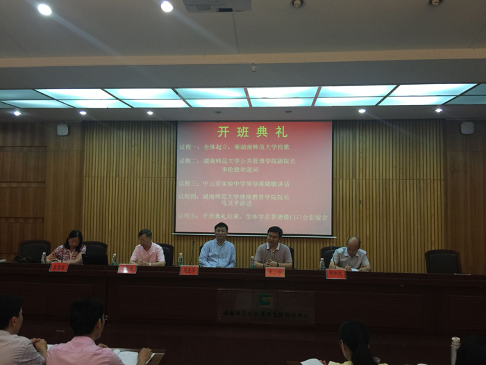 首先,湖南师范大学继教院培训科科长张雪梅老师隆重介绍了莅临本次研修班开班典礼的各位领导老师,同时对全体研修班培训干部表示衷心的欢迎,从而拉开了此次研修班的序幕!紧接着,会议进行第一项,研修班全体干部起立,奏唱湖南师范大学校歌。
